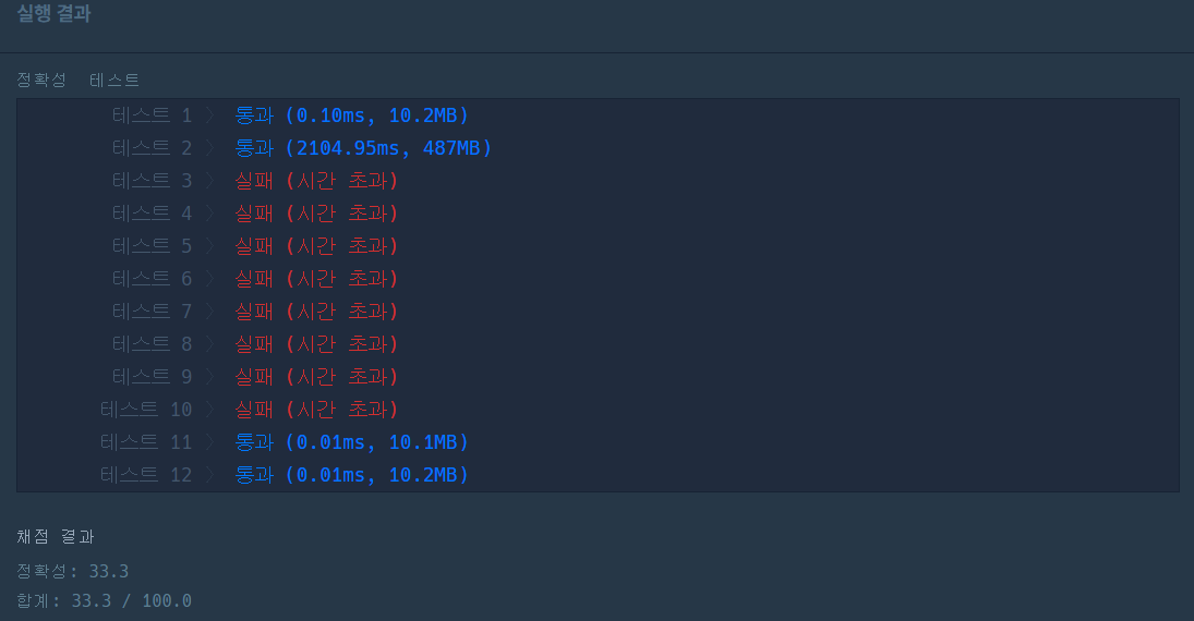 시간 초과가 났던 풀이 방식입니다. 실제로도 제한 조건이 100만 자리 이하의 자연수이기 때문에 시간 초과가 날 것을 예상하긴 했지만 가장 단순한 접근이어서 풀어보았습니다.